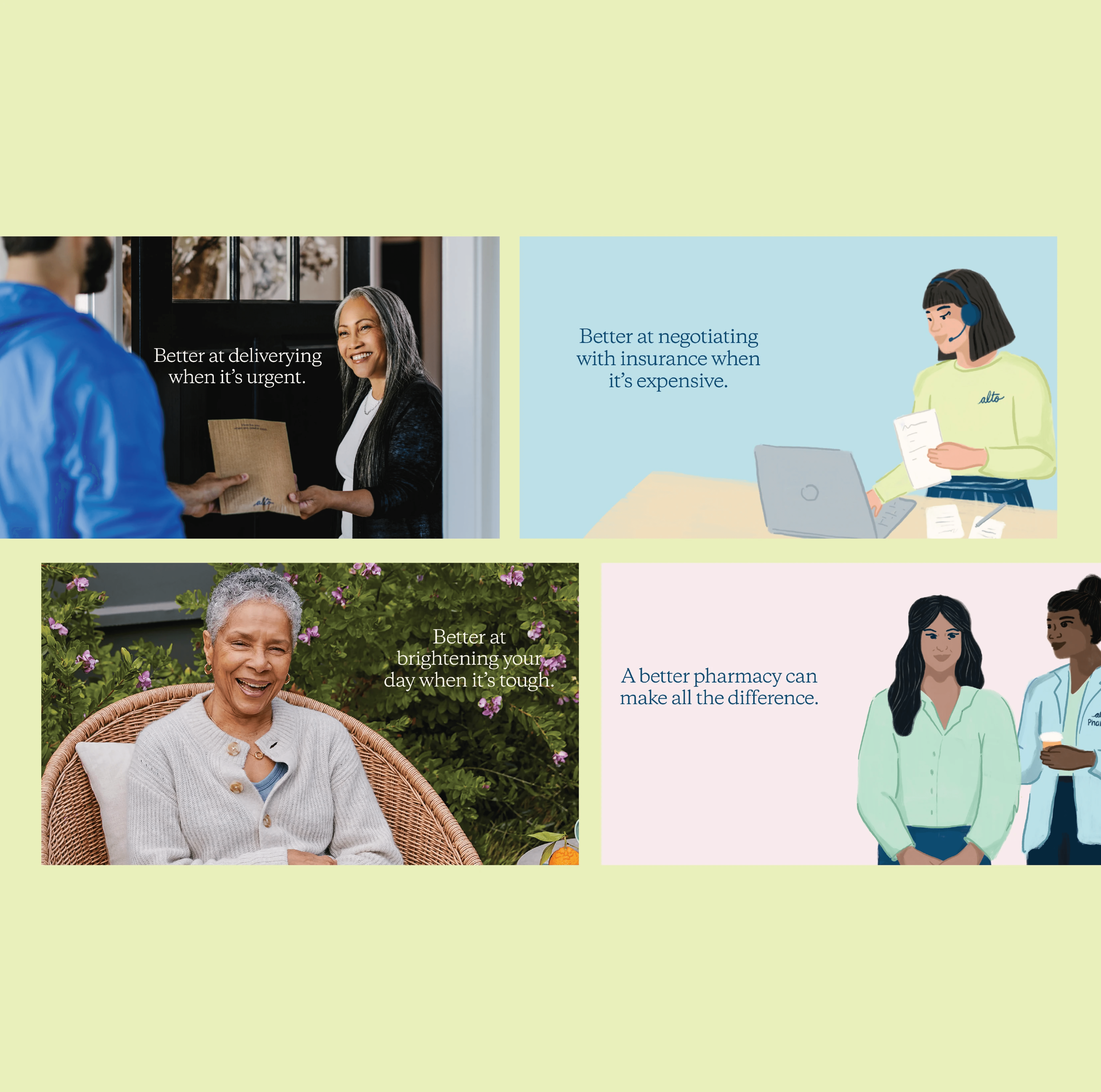 Believe in a better pharmacy. Alto simplifies medication management by offering personalized care with pharmacists who are always ready to answer questions. We provide free, same-day delivery and ensure you get the best prices on your medications.Maio Studio played a key role in creating and evolving the brand's visual identity, contributing to all aspects of visual and brand marketing, including print materials, packaging design, TV commercials, out-of-home advertising, custom illustrations, retail space design, and photoshoot direction.